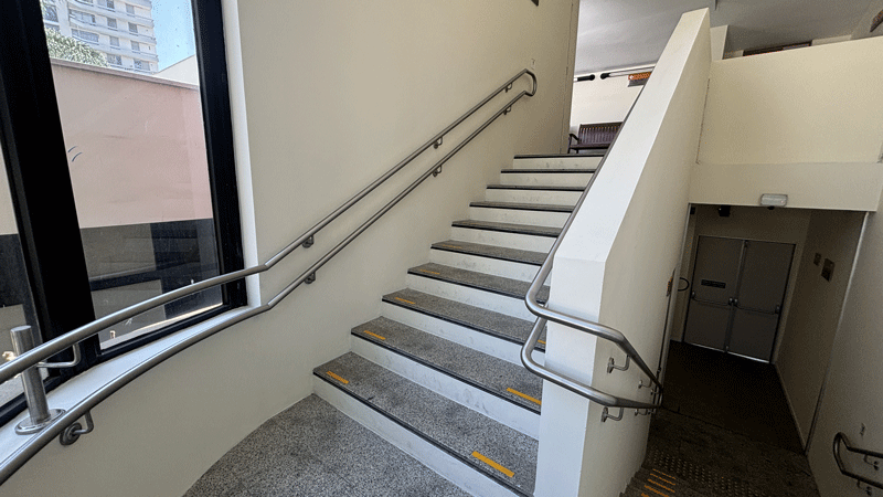 O corrimão em aço inox faz parte dos itens de segurança conforme a norma ABNT 9050, que traz os critérios de acessibilidade a edificações, mobiliário, espaços e equipamentos urbanos. Serve como auxílio em rampas e apoio em escadas, em ambos os ambientes sua instalação é obrigatória.